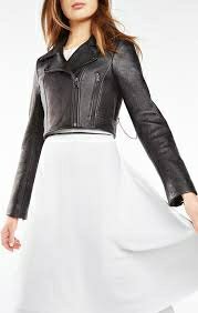 Try a leather jacket with your dress for a day out.